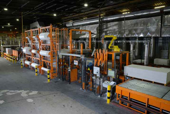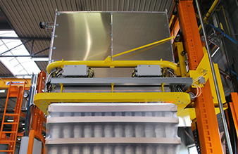 MSK Unitech univerzális palettázó-koncepció üvegrétegek és kartonok palettázásához, átállítási idő nélkül a munkafolyamat váltása során