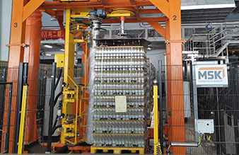 Automatikusan állítható MSK palettázó rendszerek gyors munkaváltáshoz különböző üvegkonténer típusok esetén