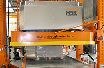 MSK Formtech fóliaformázó berendezés nyitott raklap lábakhoz, automatizált raktári és szállítási rendszerekhez